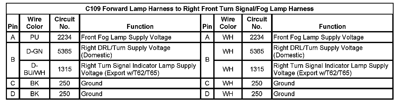 C109 Forward Lamp Harness to Right Front Turn Signal/Fog Lamp Harness