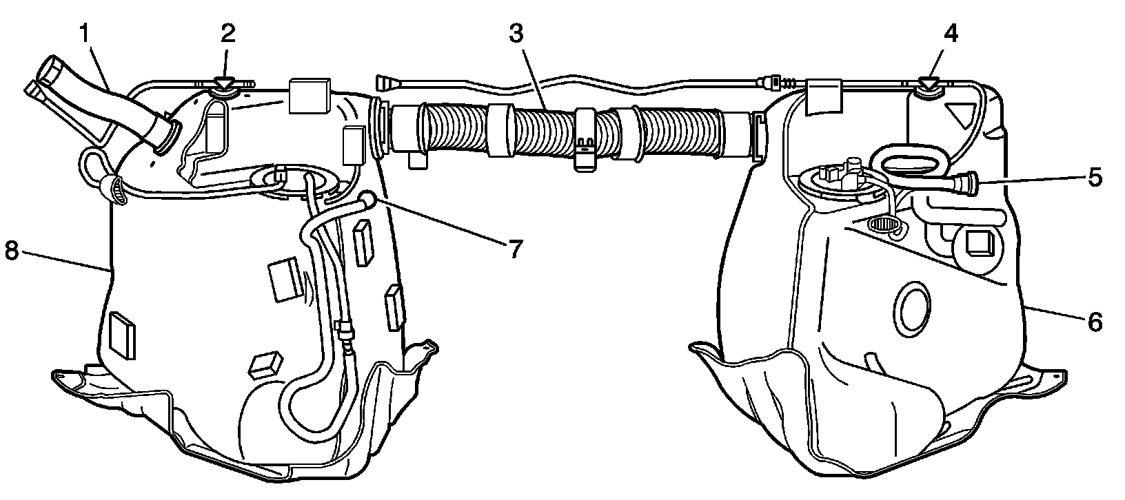 * The fill limiter vent valve (FLVV) (6)-this valve acts as a shut off valve. The FLVV is located on the right fuel sender. This valve is not serviced separately. The FLVV has the following functions: