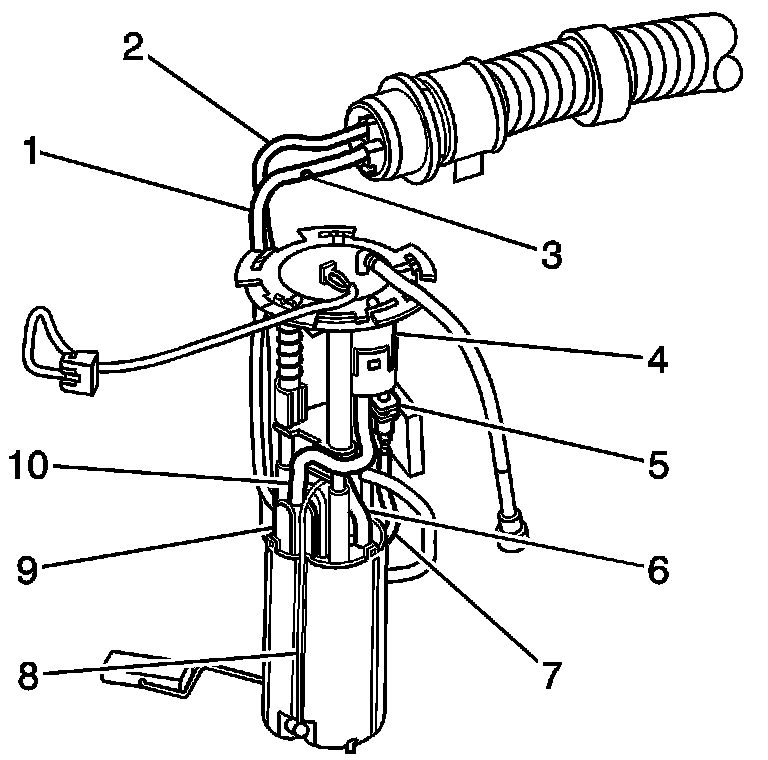 * The modular fuel sender assembly (5)-this assembly pumps fuel to the engine from the fuel tank.