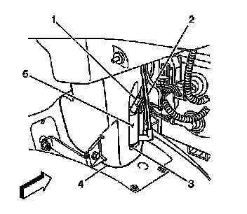 3. Disconnect the washer hose (2) from the washer pump (5).