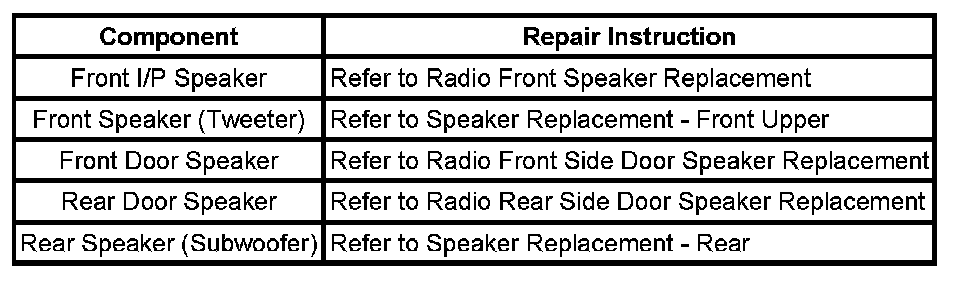 Speaker Replacement Reference