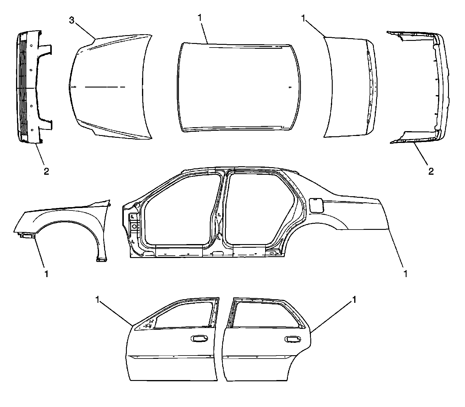 Exterior body panels are constructed of various materials. This is due to increased dent and corrosion resistance of modern composites. All vertical panels: fenders, doors, quarter and rocker panels, roof, and deck are made from rigid steel. Front and rear fascias and bumper covers are constructed of thermoplastic olefin (TPO). The hood is aluminum.