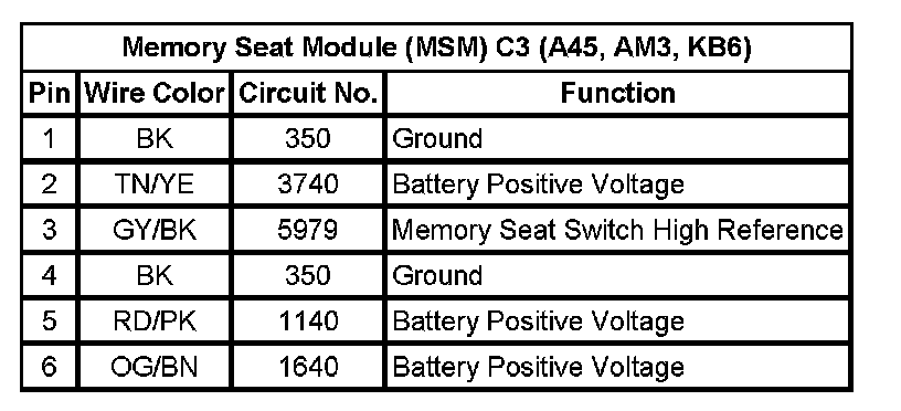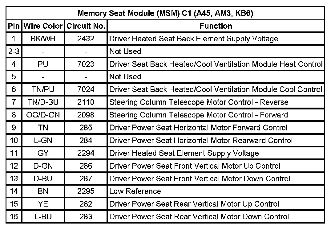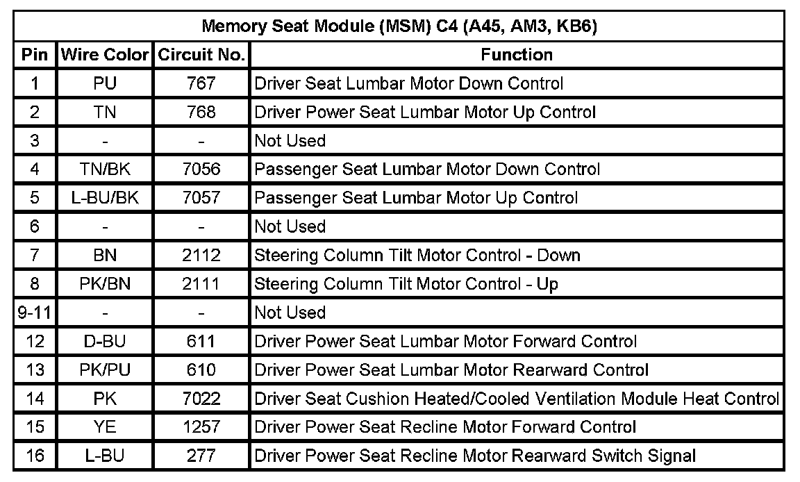 Memory Seat Module (MSM) C1 (A45, AM3, KB6)
