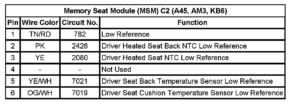 Memory Seat Module (MSM) C2 (A45, AM3, KB6)
