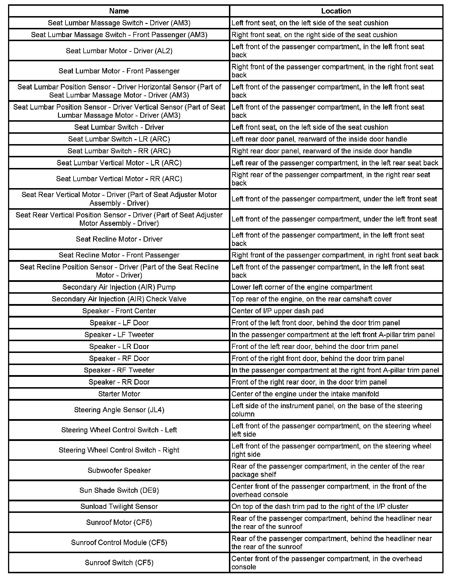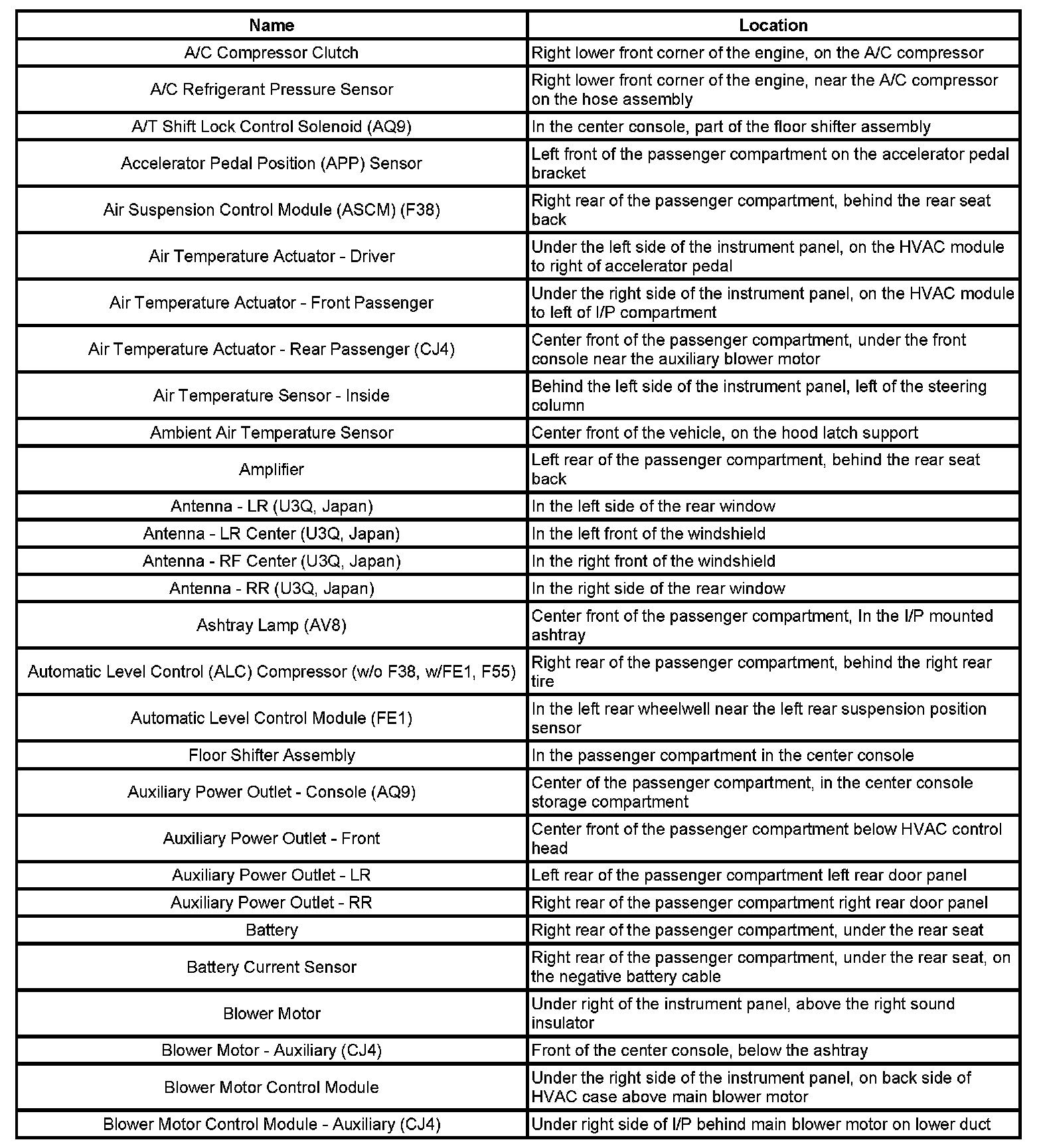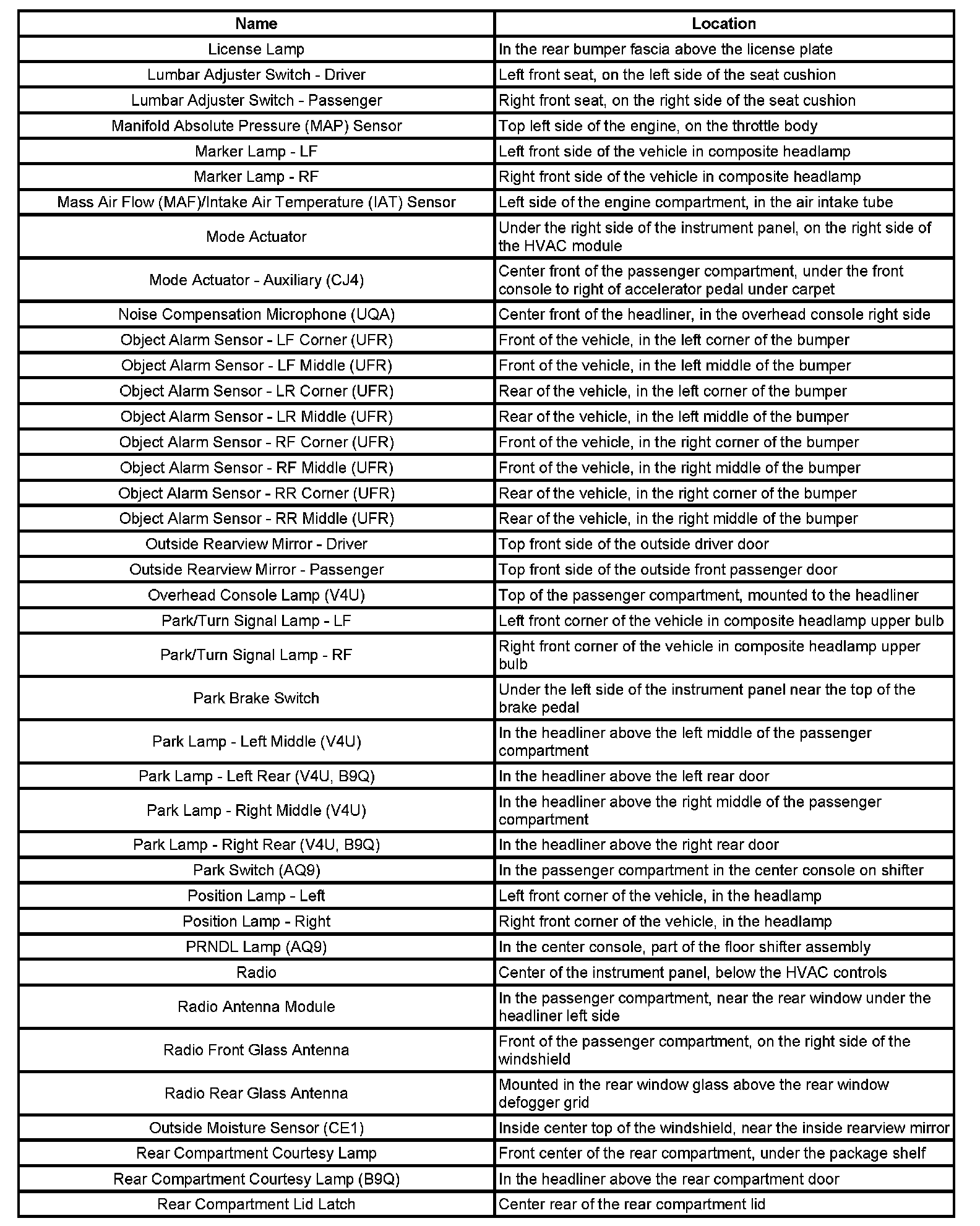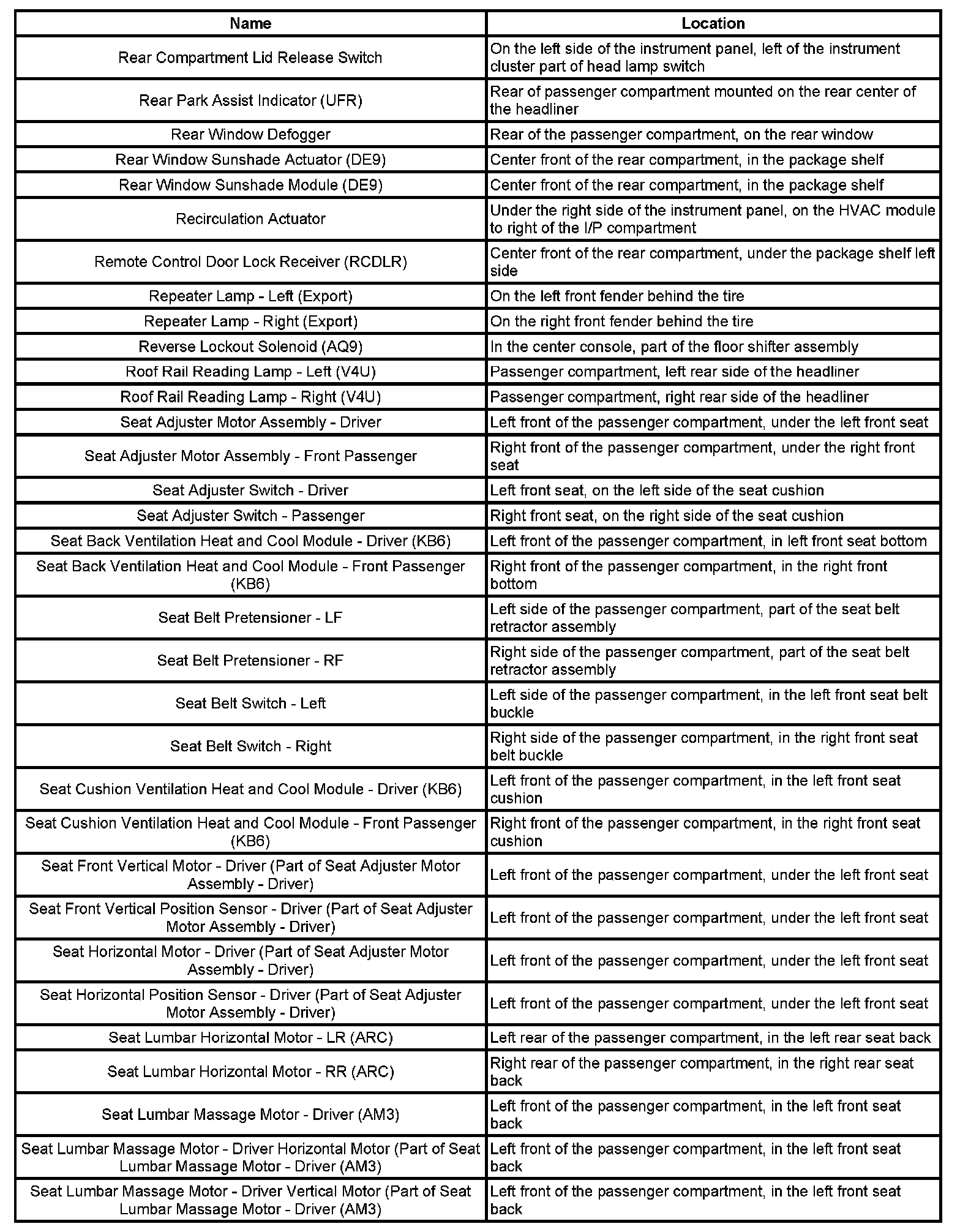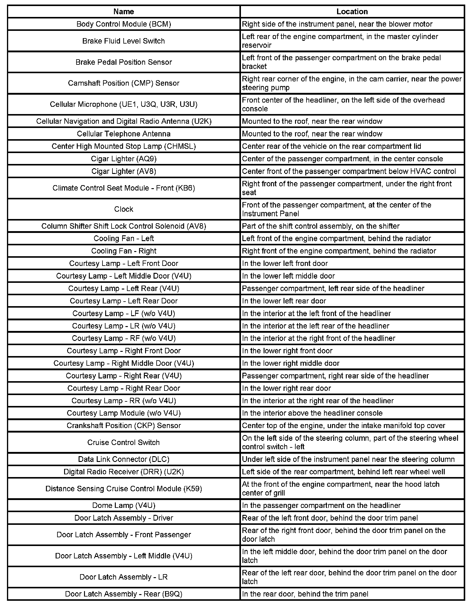 Master Electrical Component List