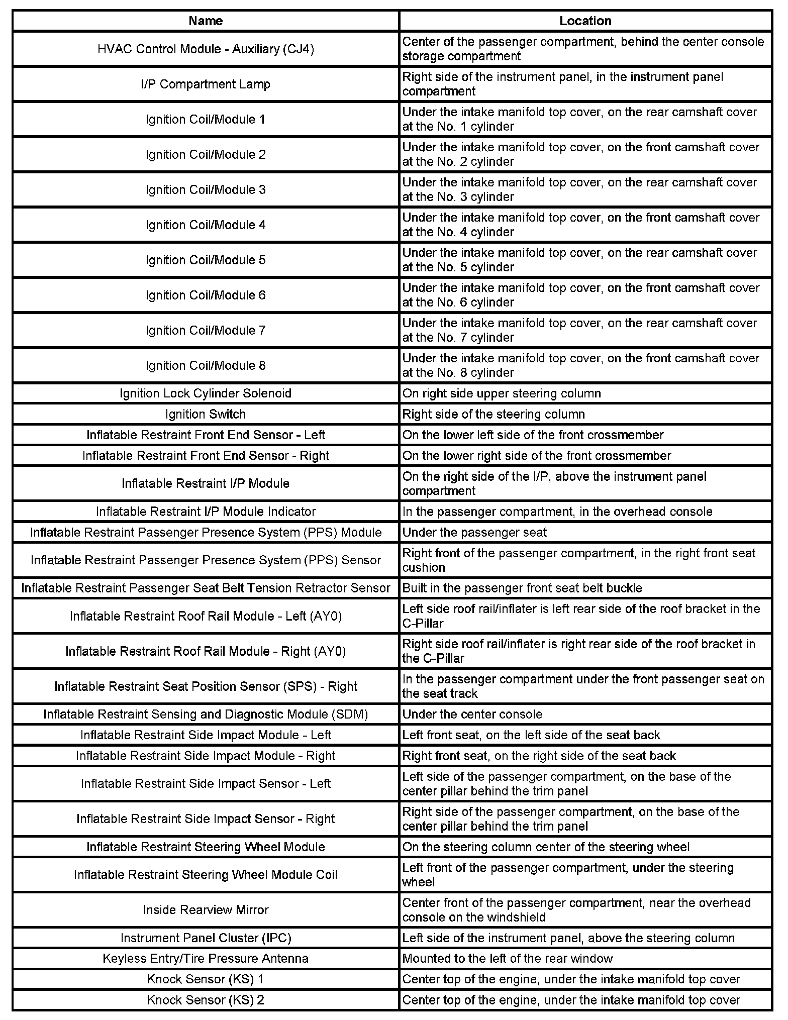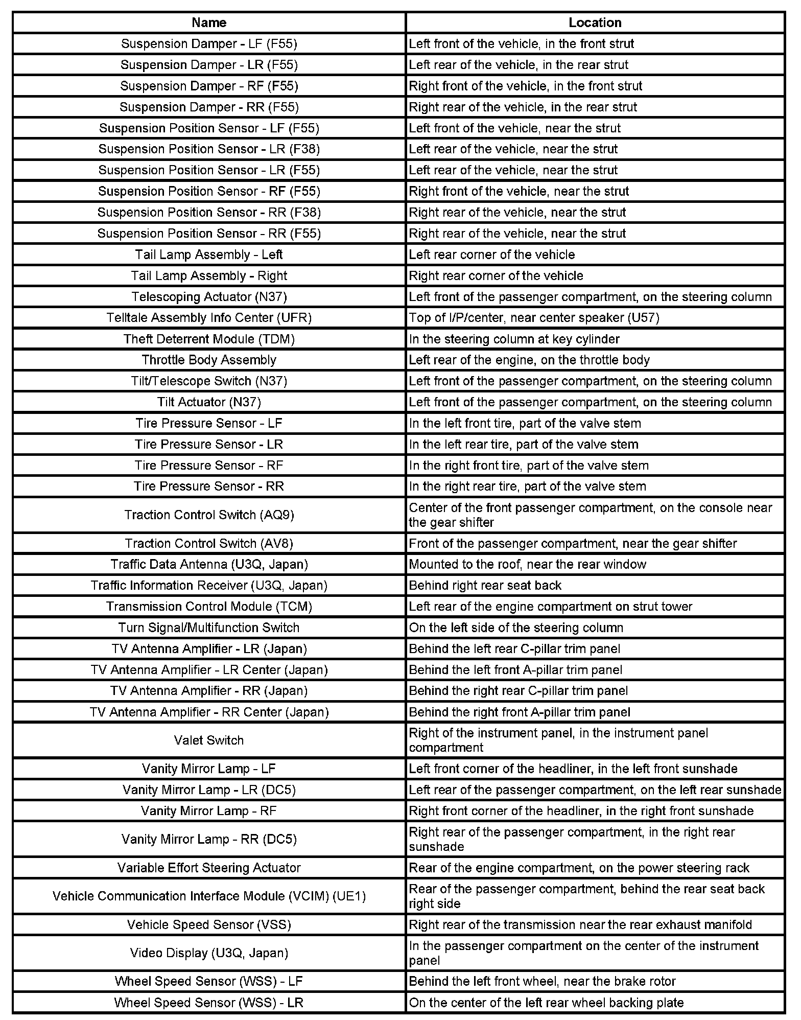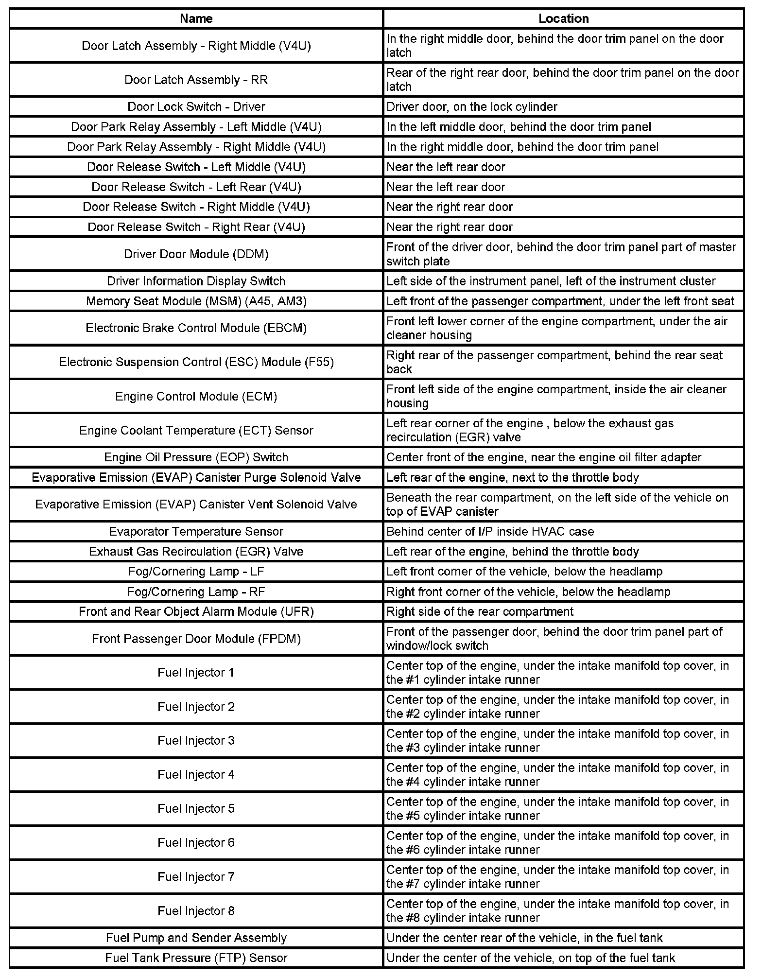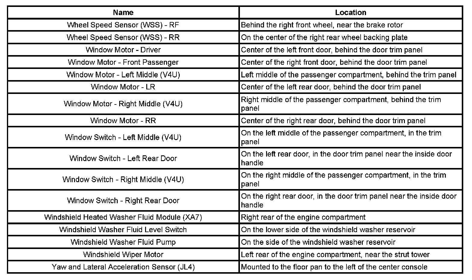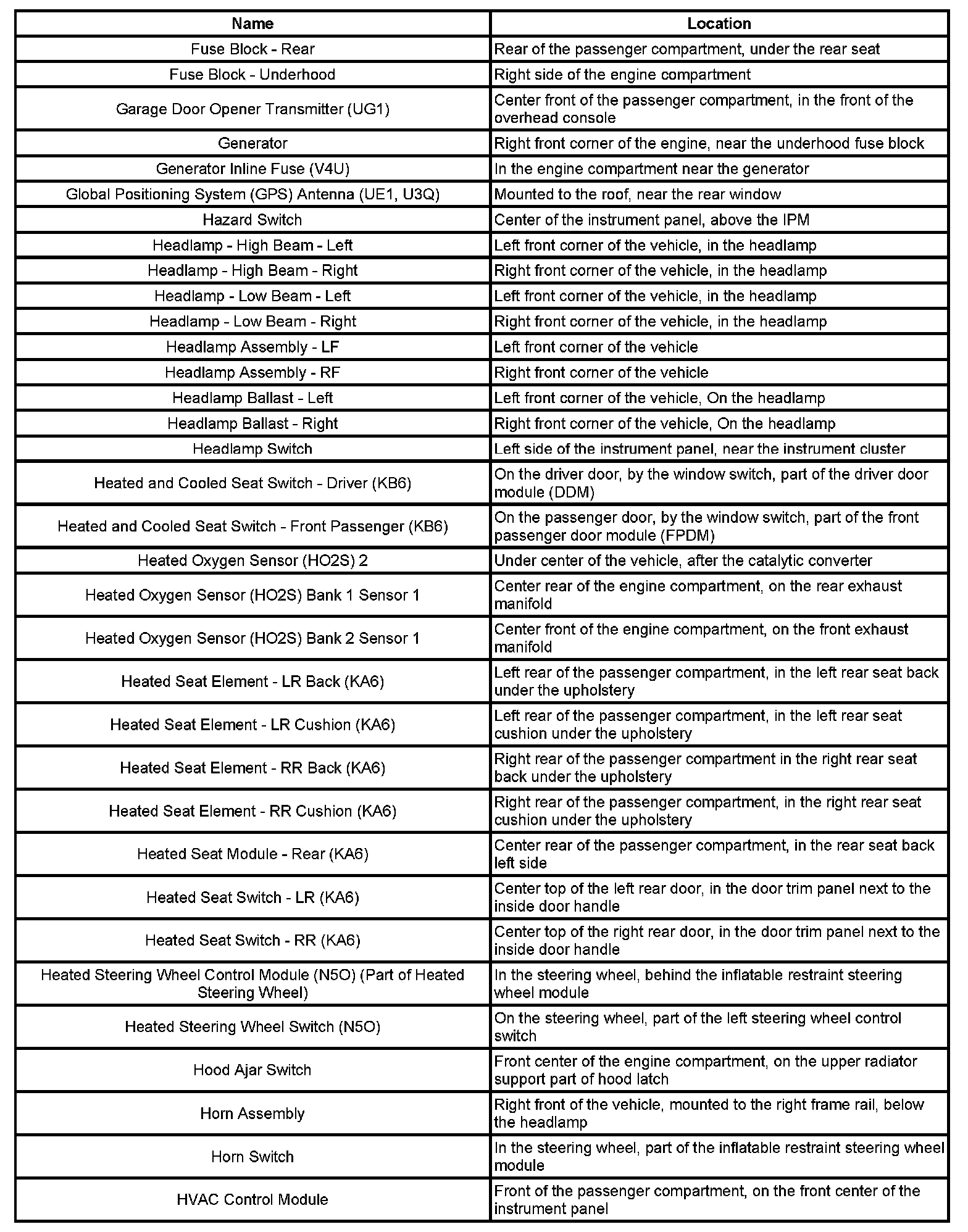 Master Electrical Component List