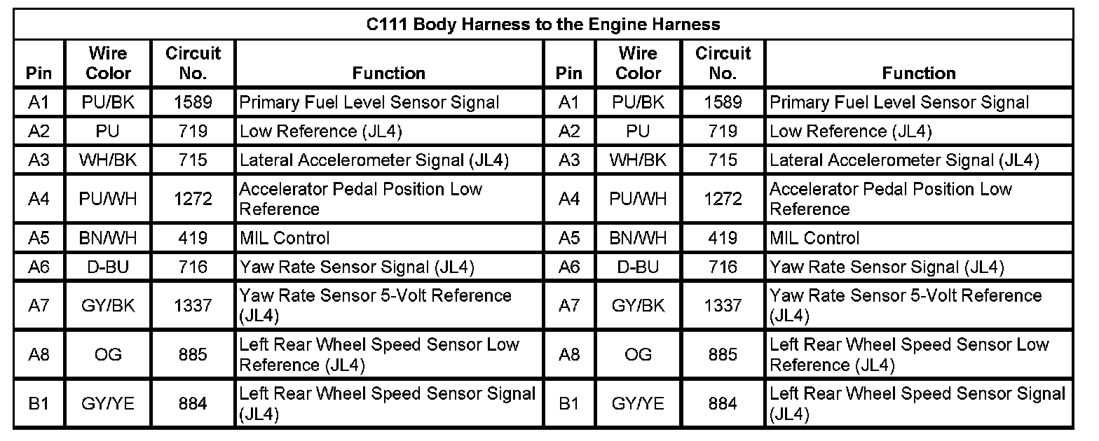 C111 Body Harness To The Engine Harness (Pin A1 To B1):