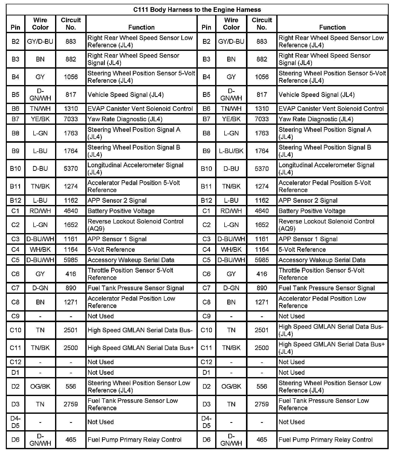 C111 Body Harness To The Engine Harness (Pin B2 To D6):