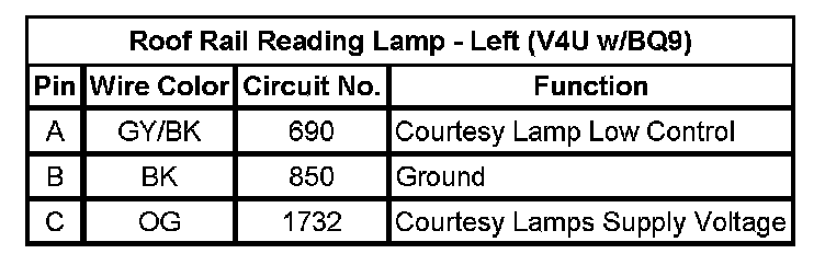 Roof Rail Reading Lamp - Left (V4U w/BQ9)