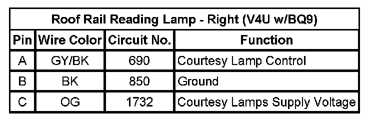 Roof Rail Reading Lamp - Right (V4U w/BQ9)