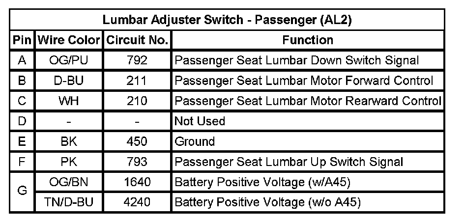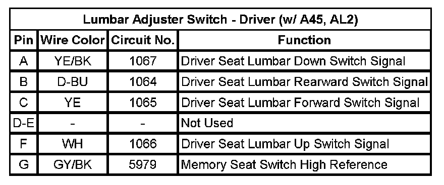 Lumbar Adjuster Switch - Driver (w/ A45, AL2)