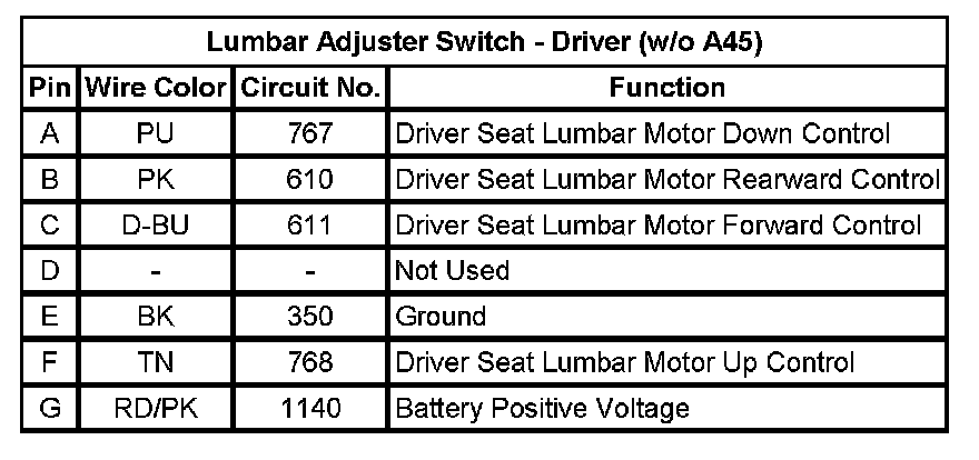 Lumbar Adjuster Switch - Driver (w/o A45)