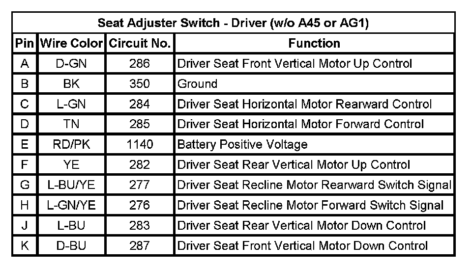 Seat Adjuster Switch - Driver (w/o A45 or AG1)