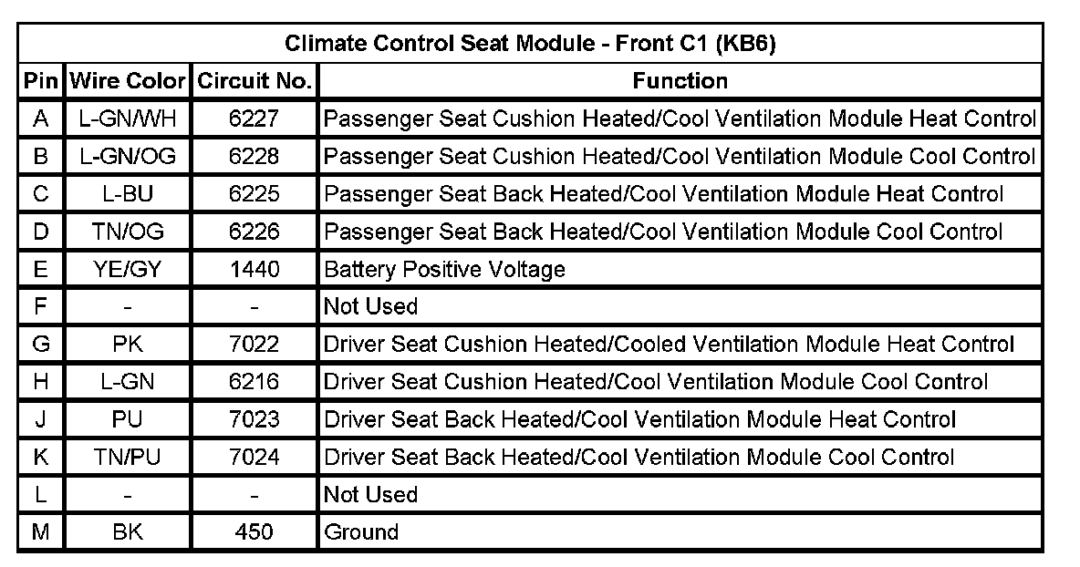 Climate Control Seat Module - Front C1 (KB6)