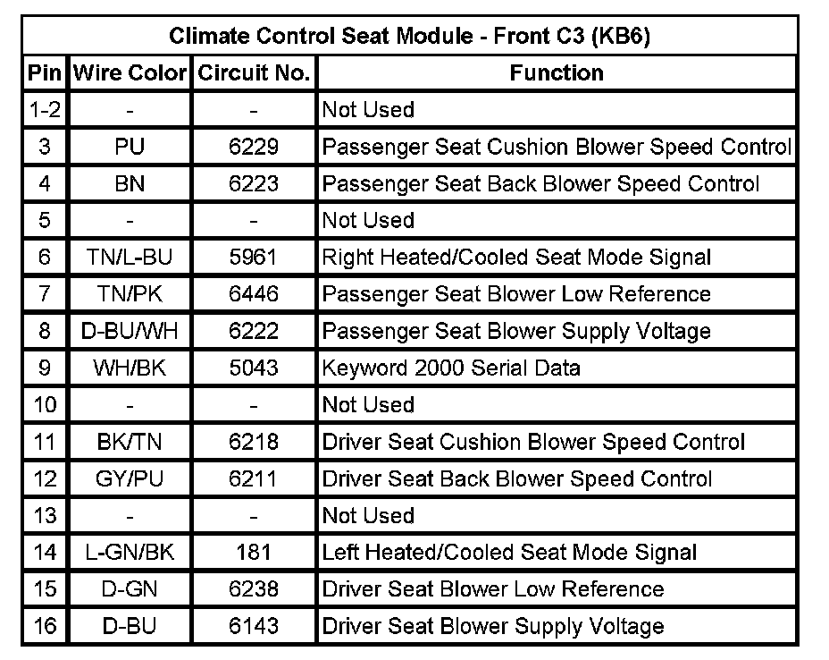 Climate Control Seat Module - Front C3 (KB6)