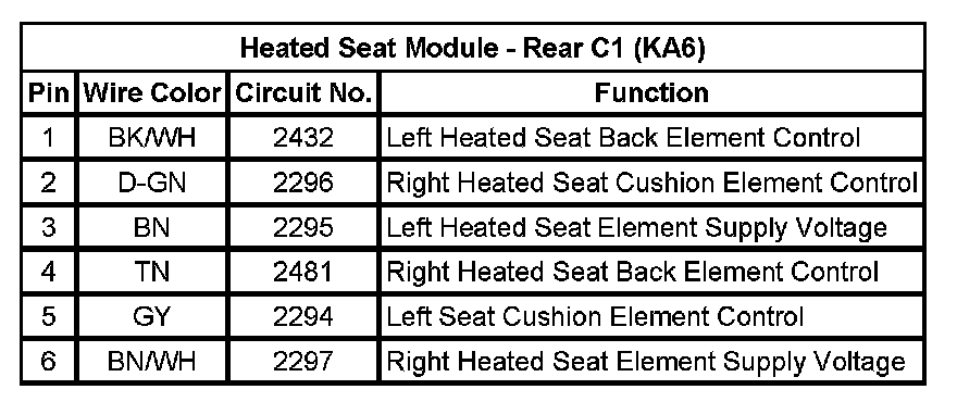 Heated Seat Module - Rear C1 (KA6)