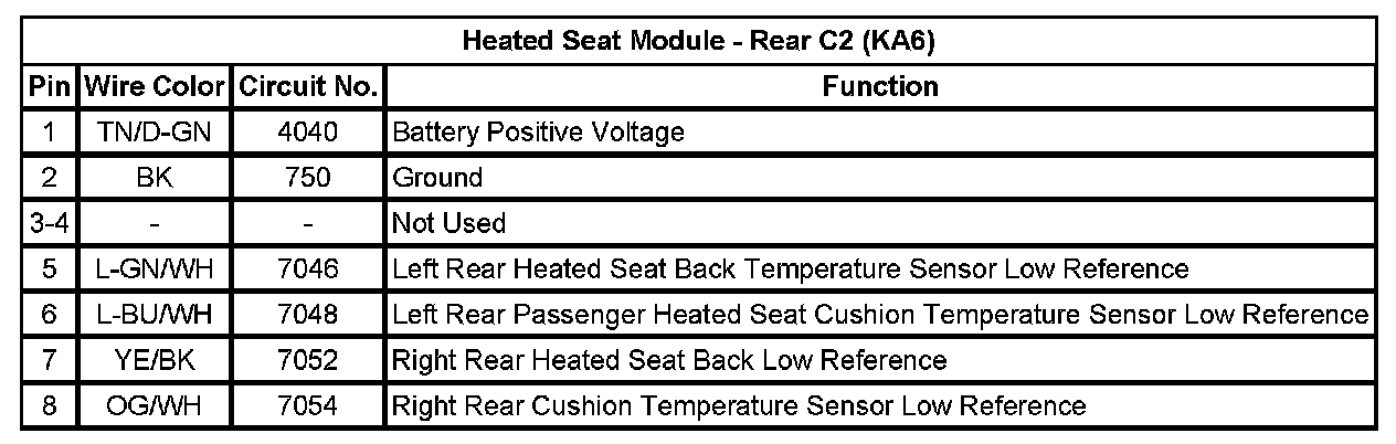 Heated Seat Module - Rear C2 (KA6)
