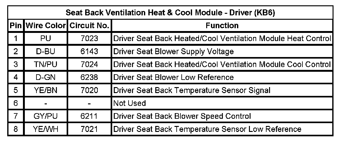Seat Back Ventilation Heat & Cool Module - Driver (KB6)
