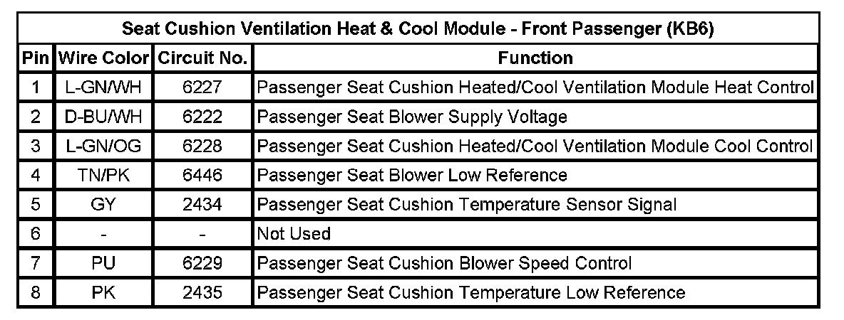Seat Cushion Ventilation Heat & Cool Module - Front Passenger (KB6)