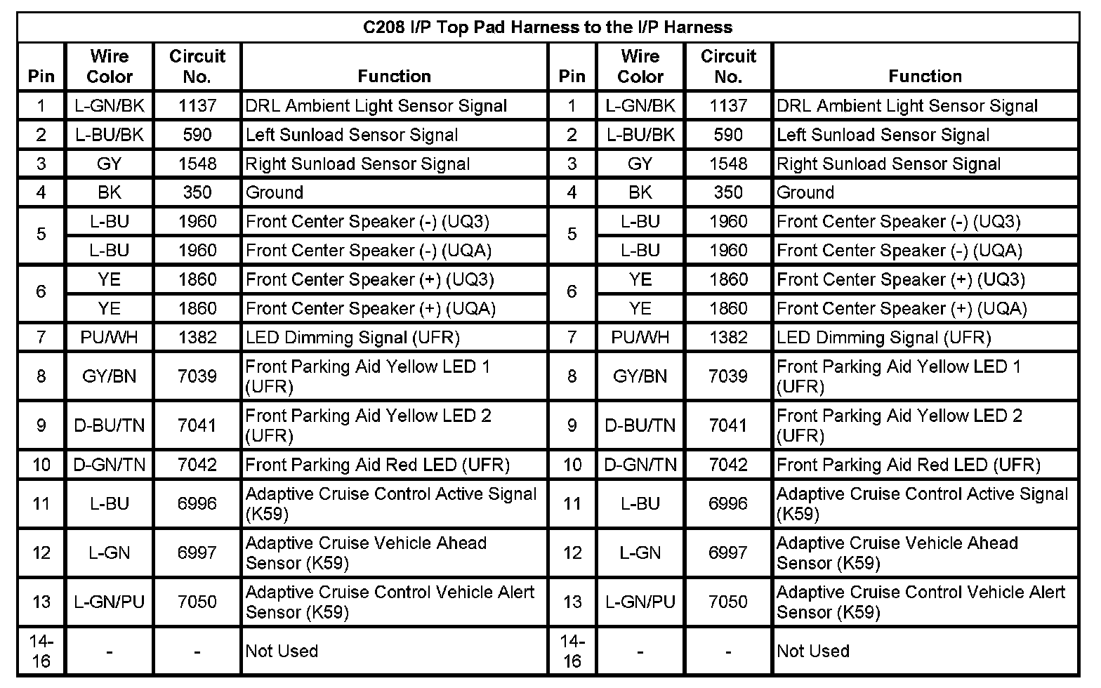 C208 I/P Top Pad Harness to the I/P Harness