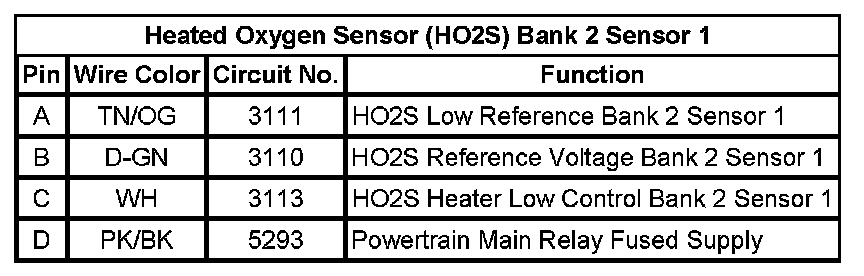 Heated Oxygen Sensor (HO2S) Bank 2 Sensor 1