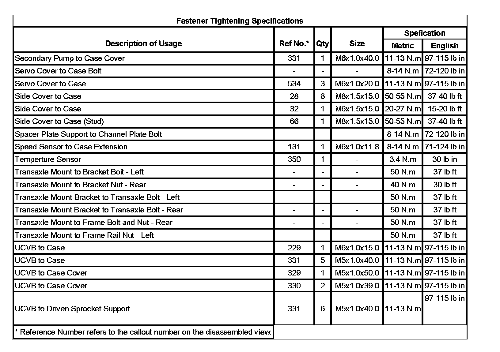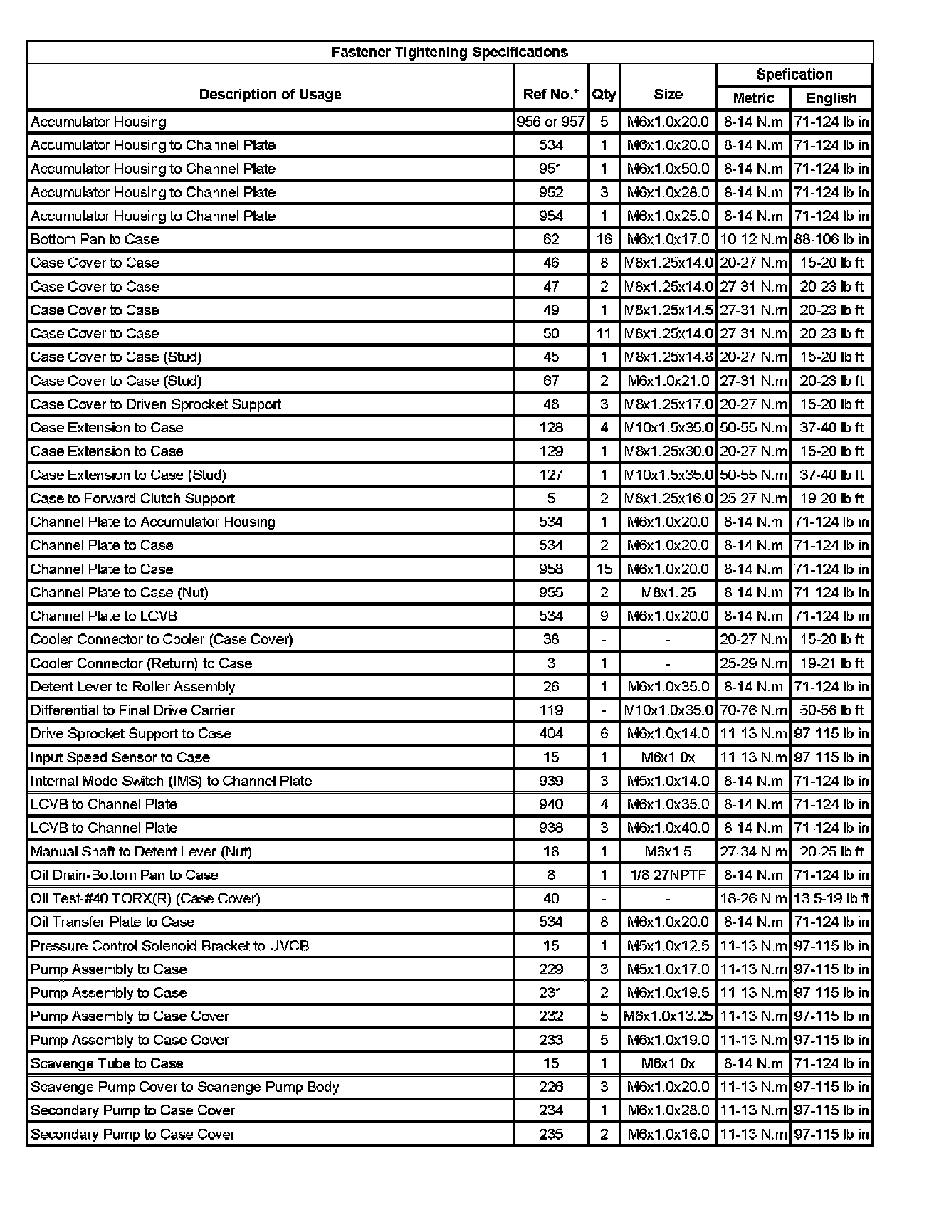 Fastener Tightening Specifications (Part 1):