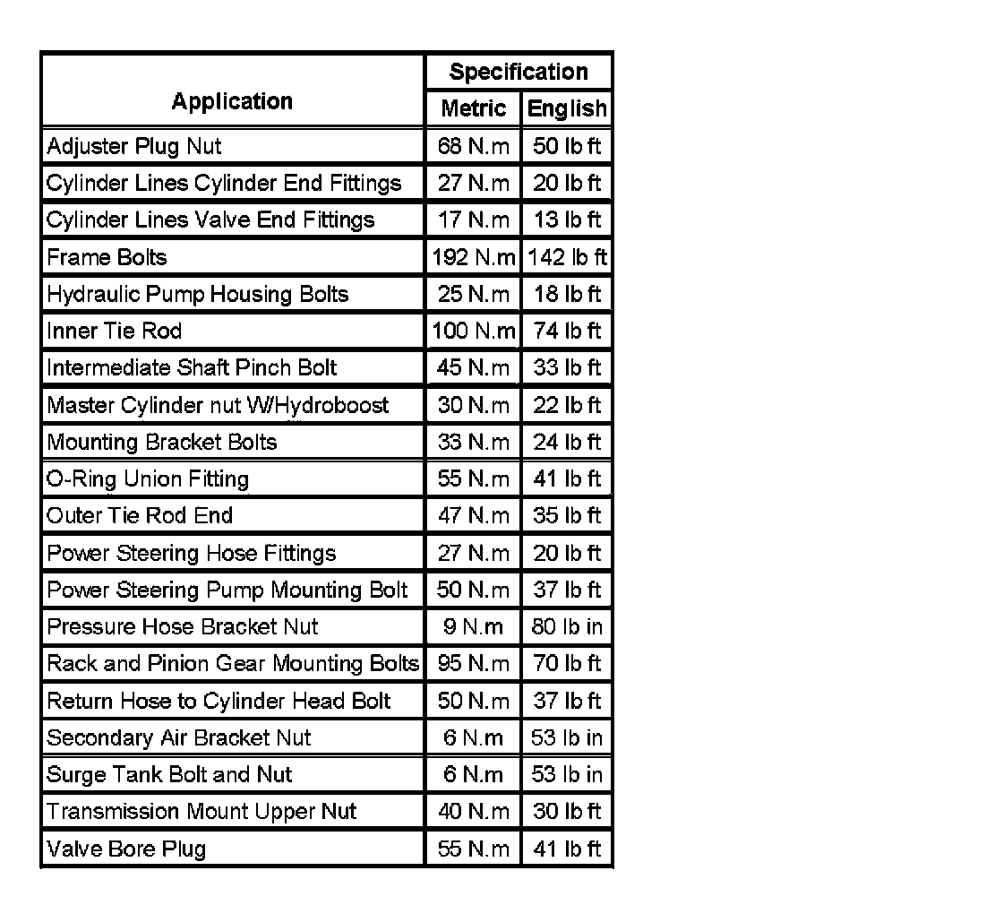 Fastener Tightening Specifications: