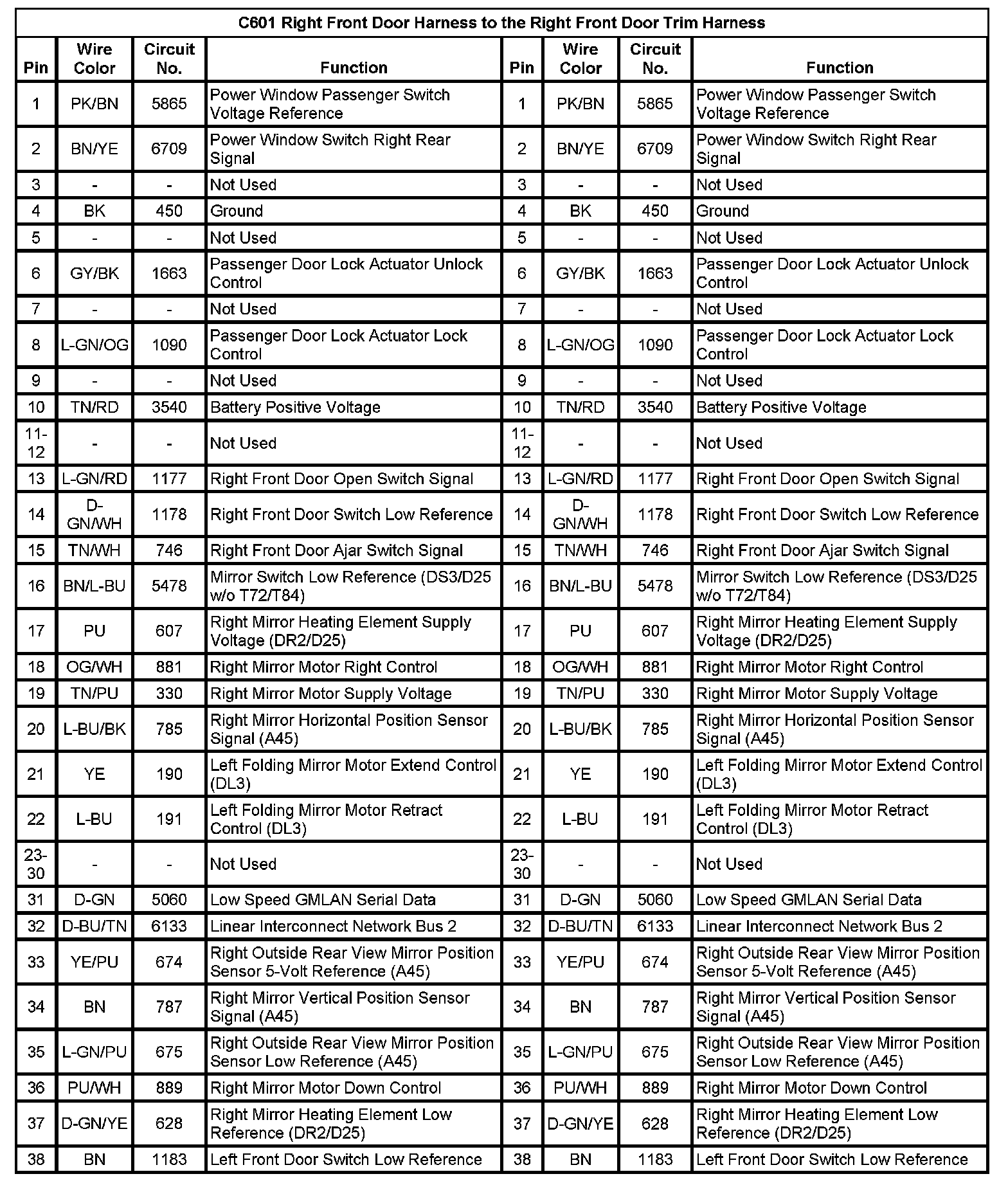 C601 Right Front Door Harness to the Right Front Door Trim Harness