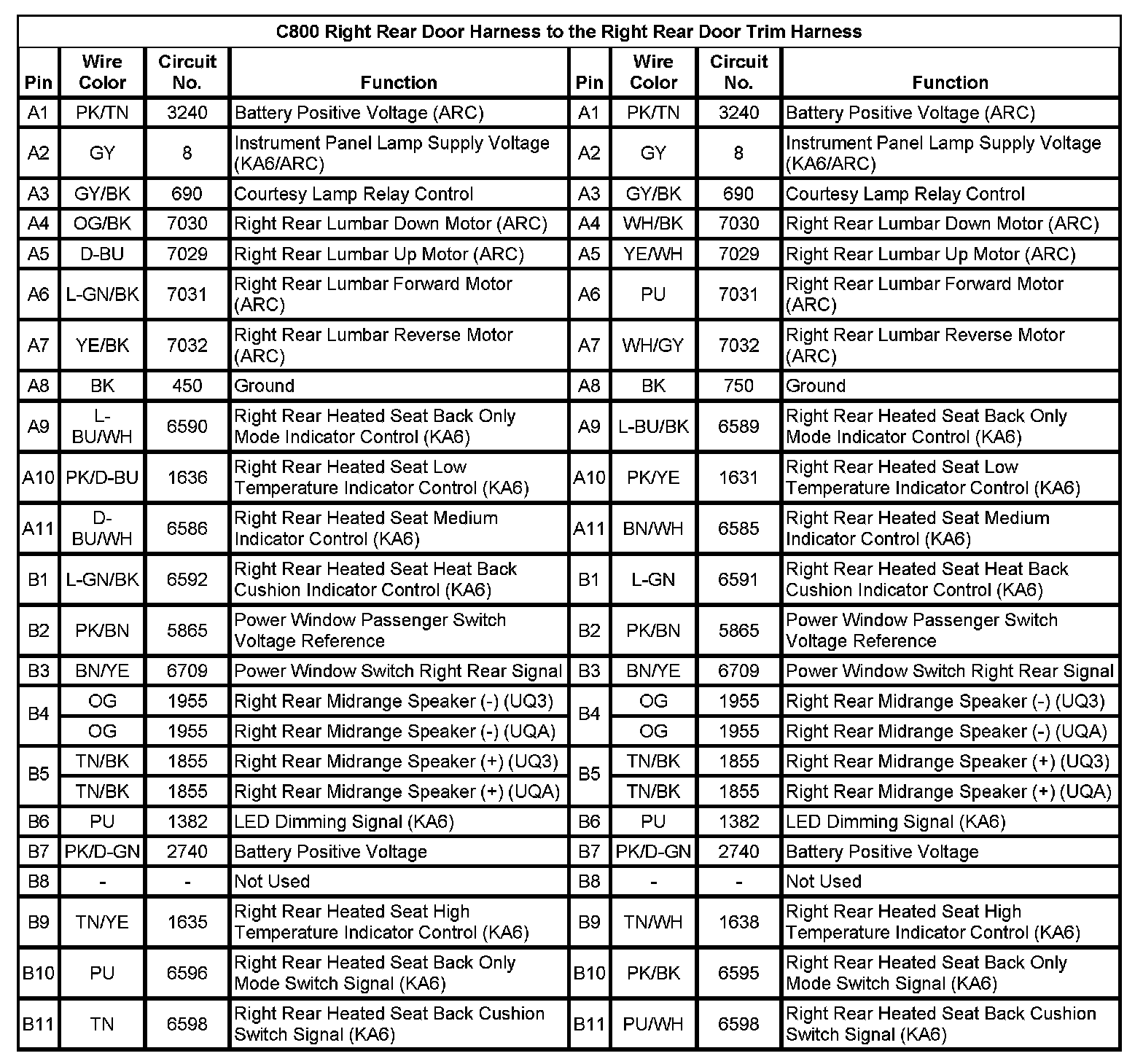 C800 Right Rear Door Harness to the Right Rear Door Trim Harness