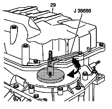 Important: The washer of the J 39686 must rest flat on the case cover seal.