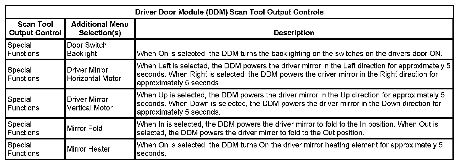 The Scan Tool Output Controls for the following control modules is located in the Special Functions section of the Scan Tool Menu.