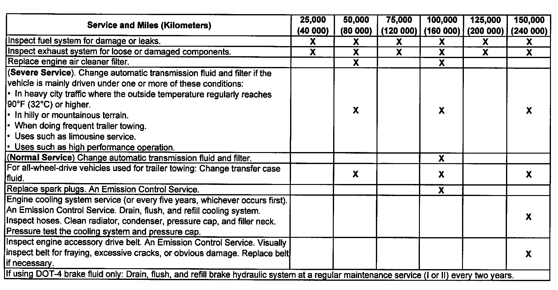 service (I or II) after the indicated miles (kilometers) shown for each item.