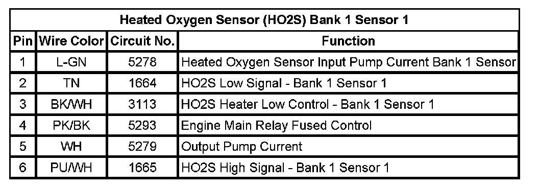 Heated Oxygen Sensor (HO2S) Bank 1 Sensor 1