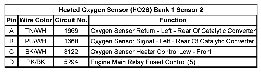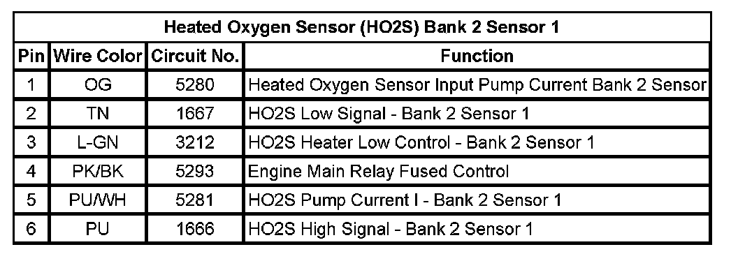Heated Oxygen Sensor (HO2S) Bank 2 Sensor 1