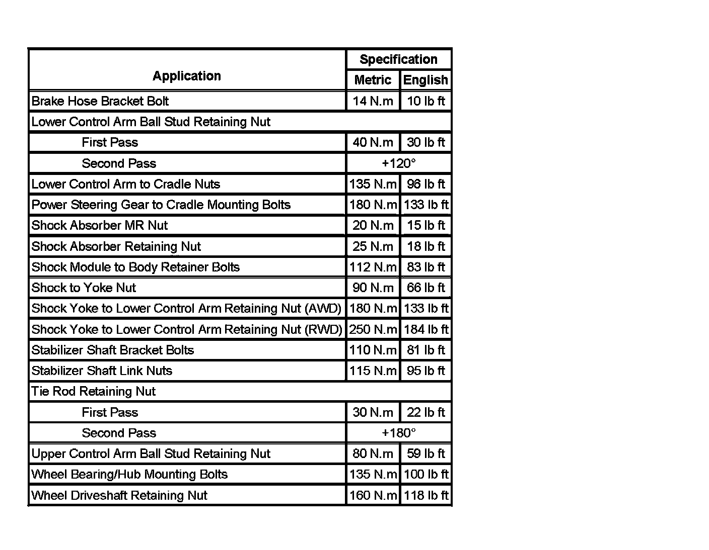 Fastener Tightening Specifications: