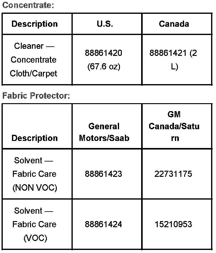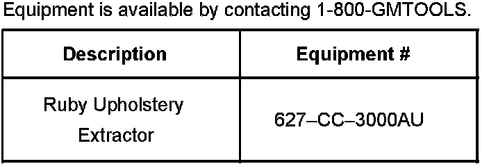 For difficult to clean materials or when cleaning a large area, the best results will be achieved when using an extractor machine and concentrate. General Motors offers the Ruby Extractor (P/N 627-CC-3000AU) through GM Tools and Equipment 1-800-GM-TOOLS, and has recently released a concentrate for use with the extractor machine.