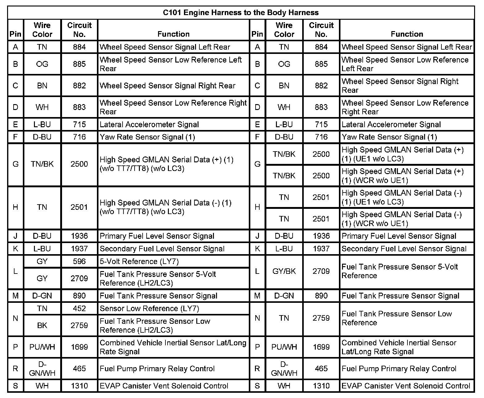 C101 Engine Harness to the Body Harness