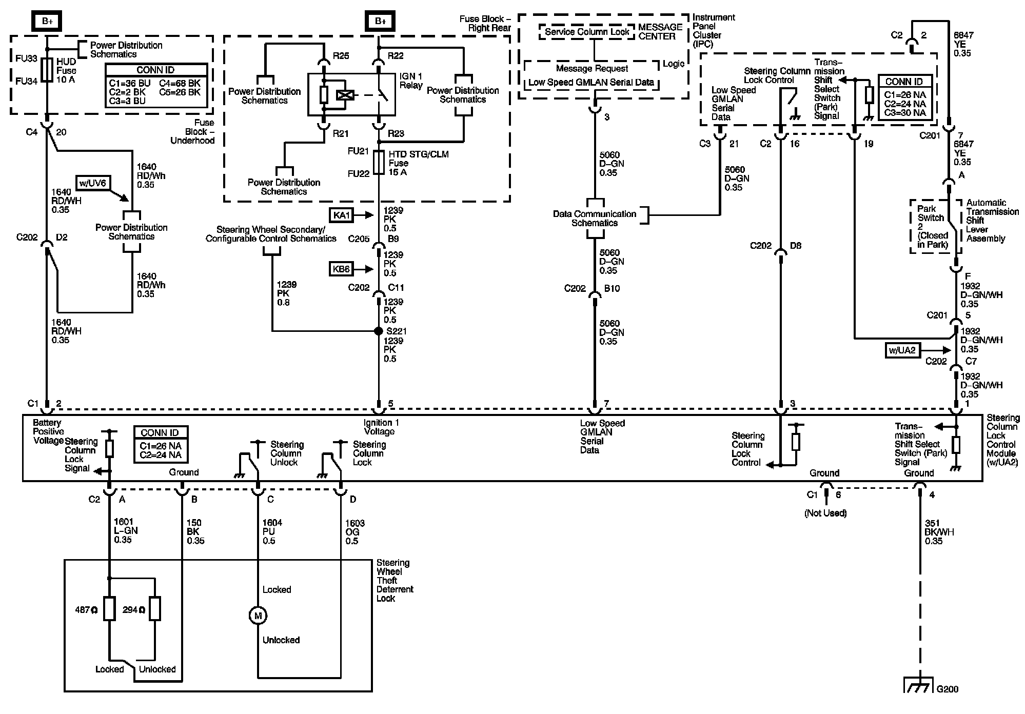 The locations for the Connectors, Grounds, Splices, and Grommets shown within these diagrams can be found via their numbers at Vehicle Locations.