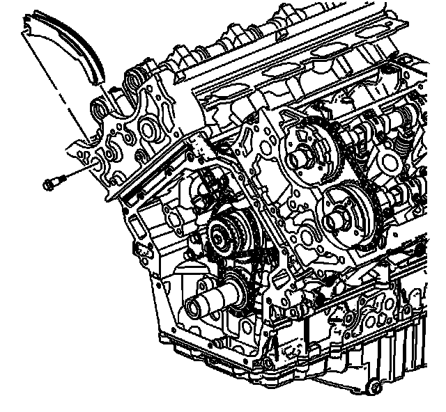 10. Remove the right secondary camshaft drive timing chain shoe bolt.