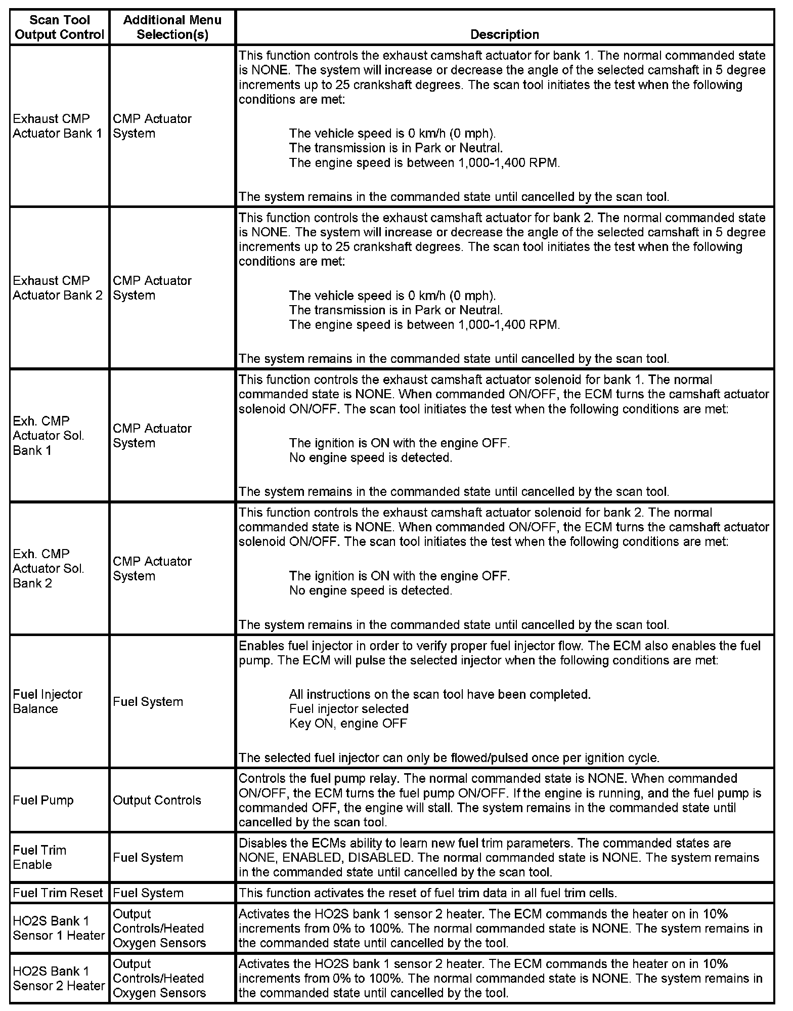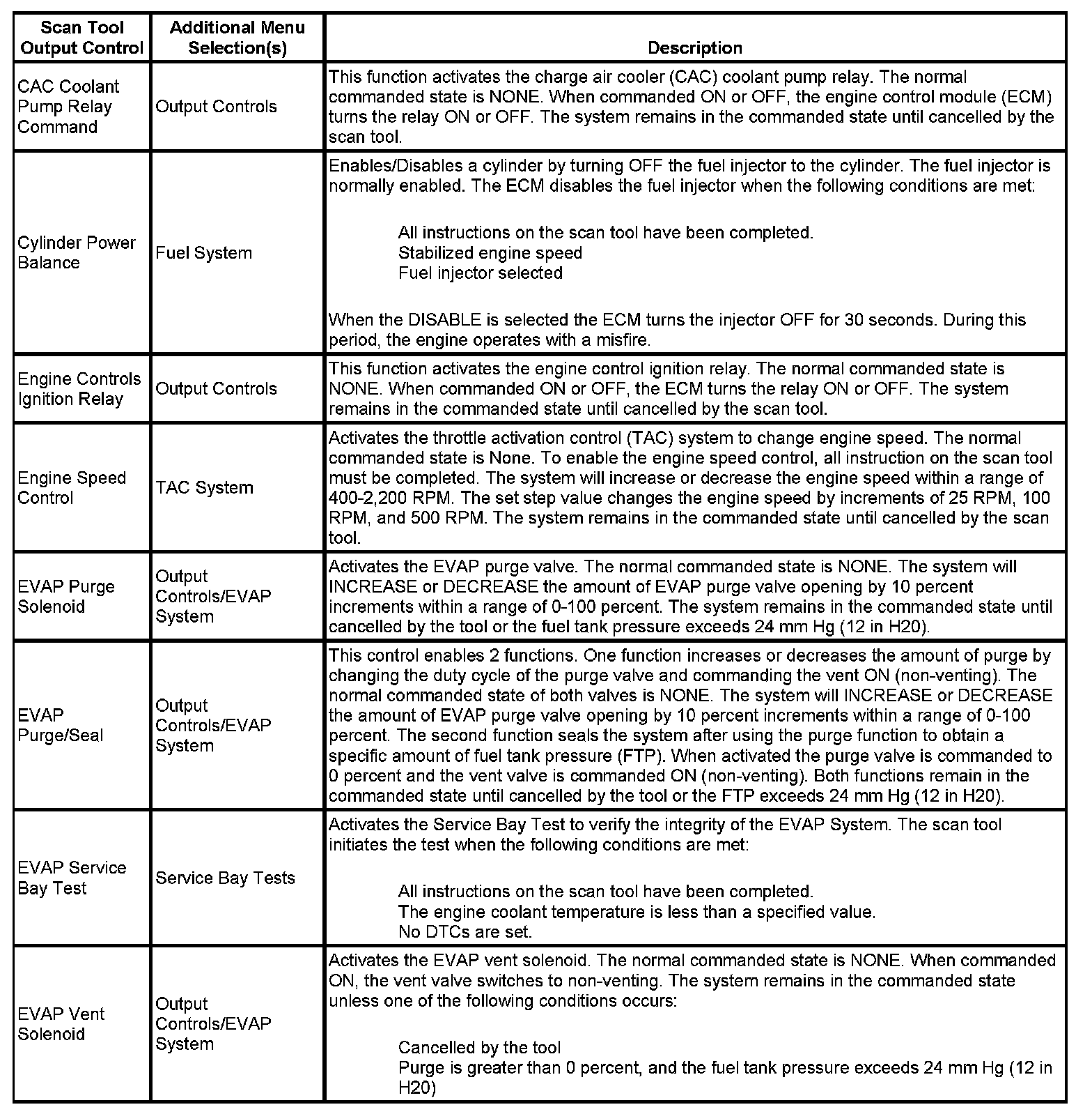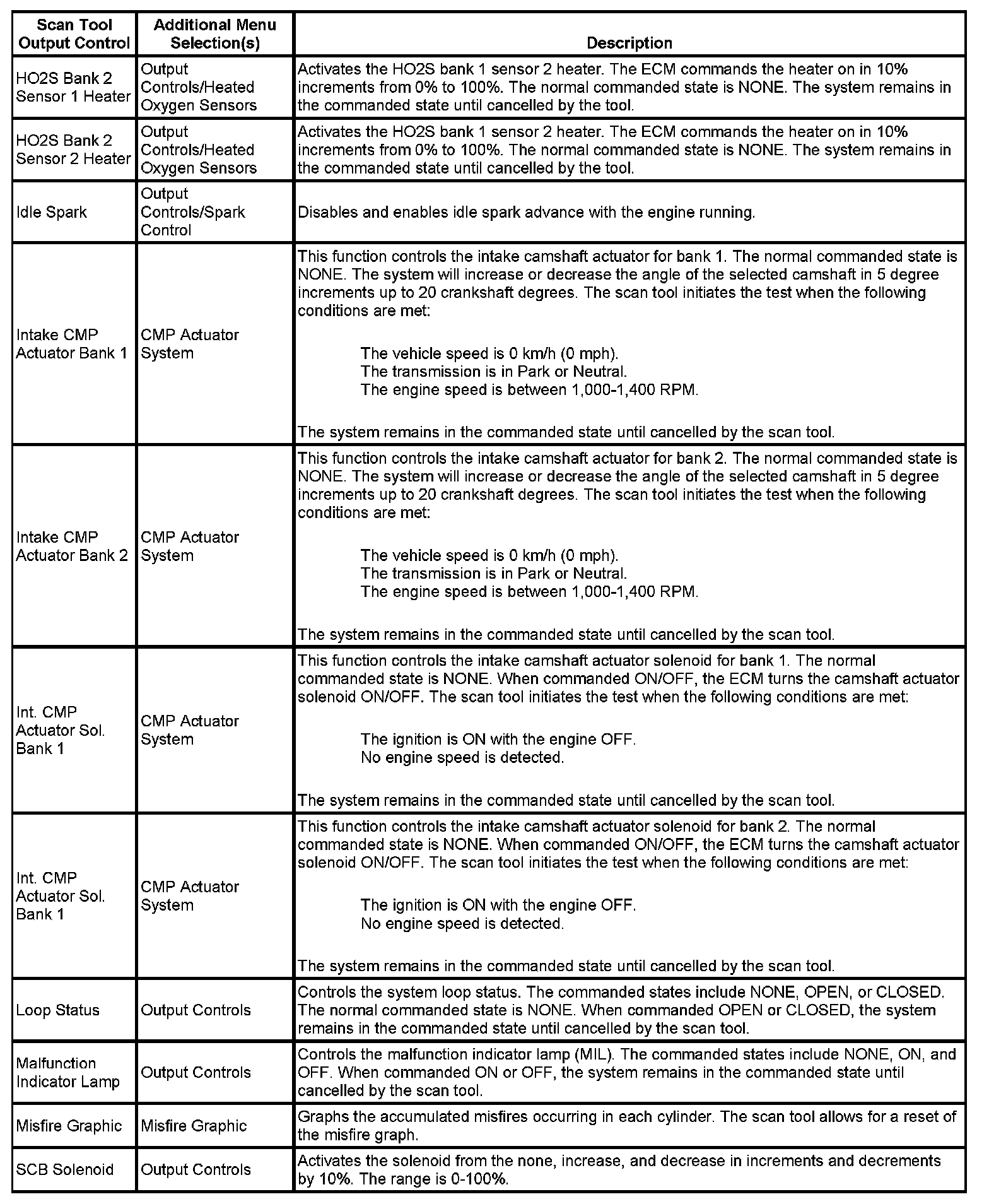 Scan Tool Output Controls
