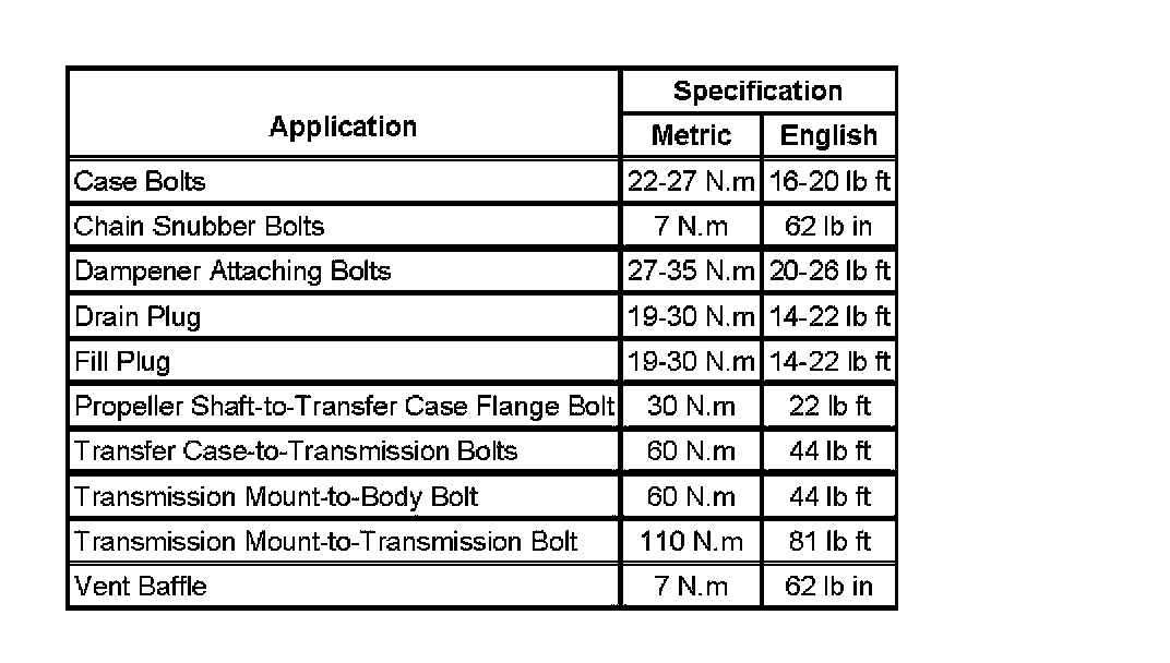 Fastener Tightening Specifications: