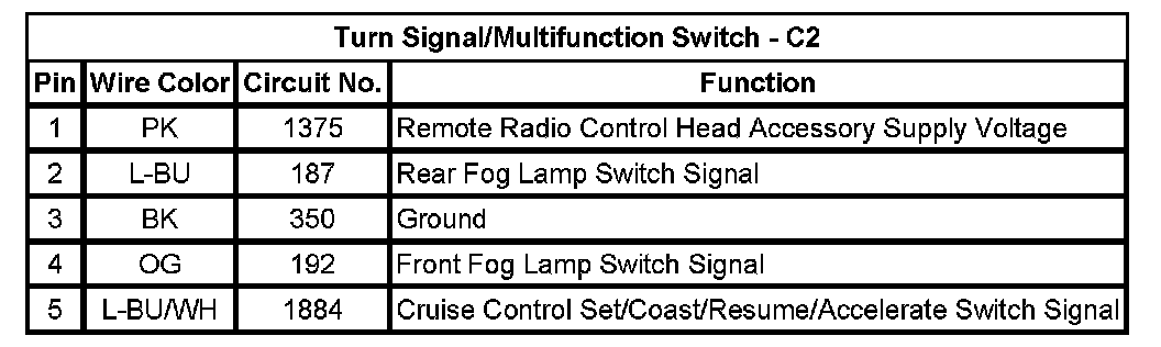 Turn Signal/Multifunction Switch - C2