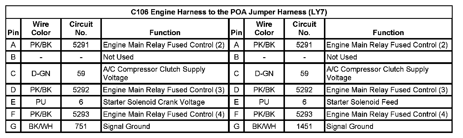 C106 Engine Harness to the POA Jumper Harness (LY7)