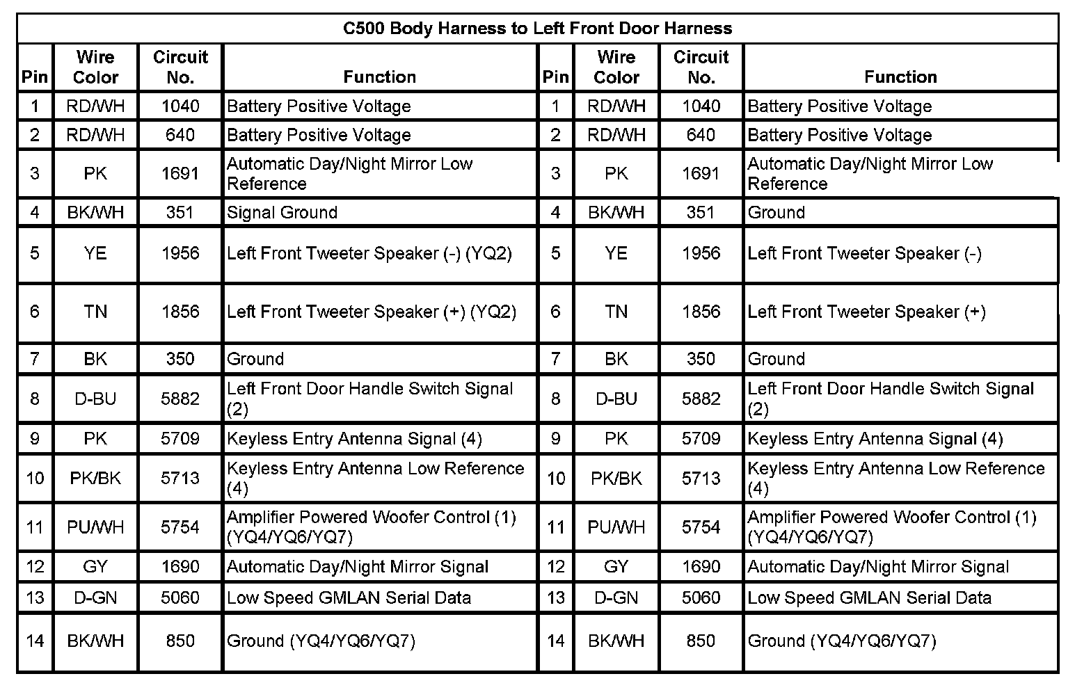 C500 Body Harness to Left Front Door Harness