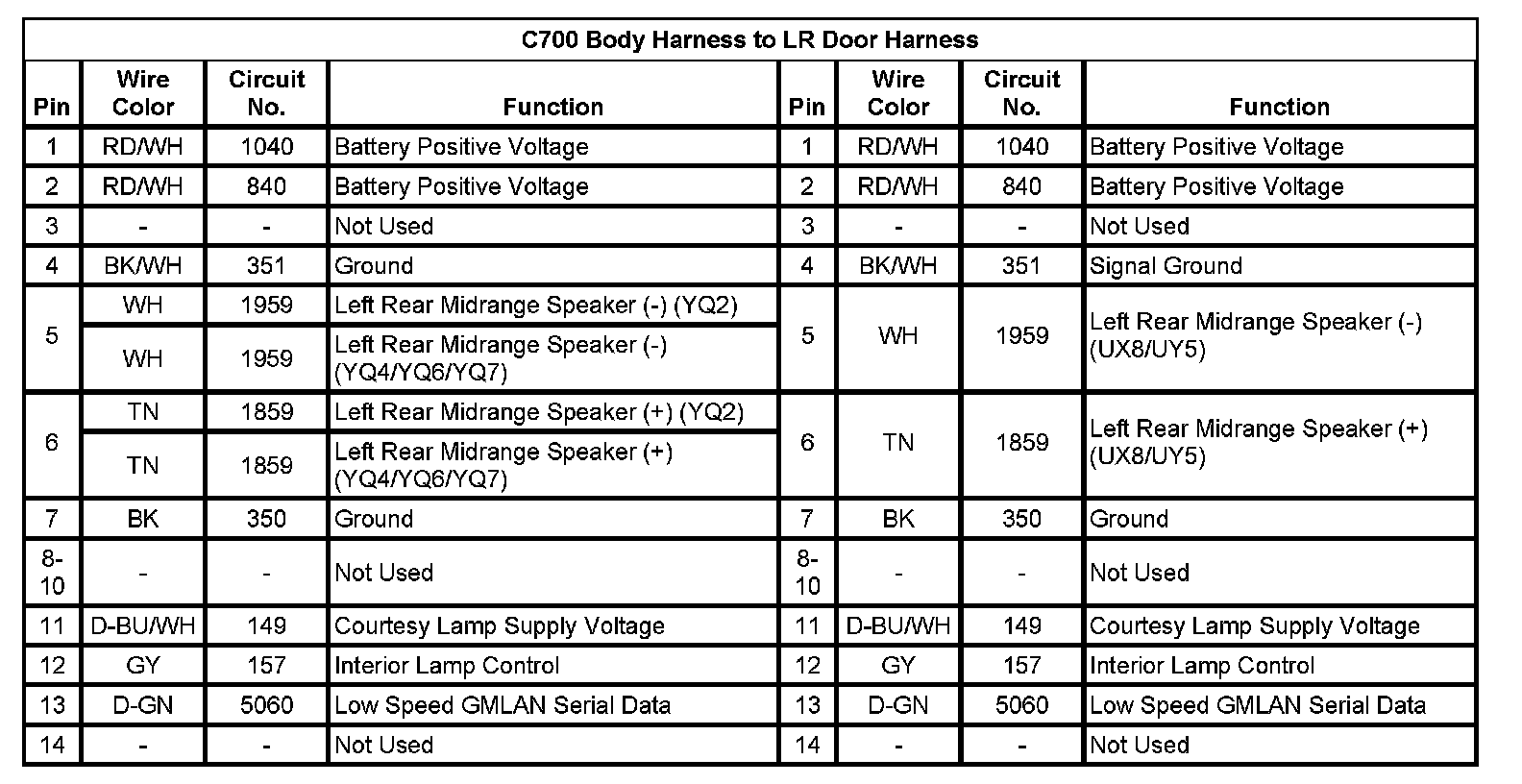 C700 Body Harness to LR Door Harness