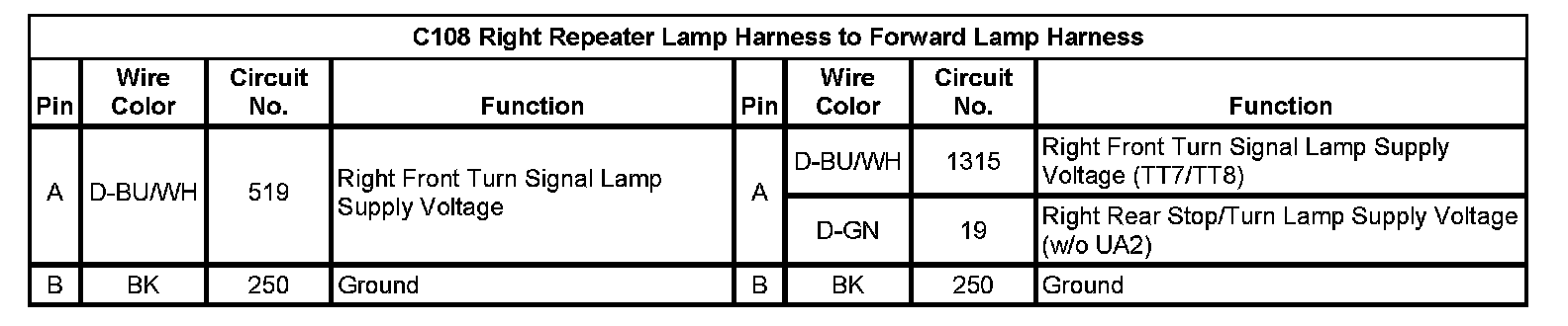 C108 Right Repeater Lamp Harness to Forward Lamp Harness