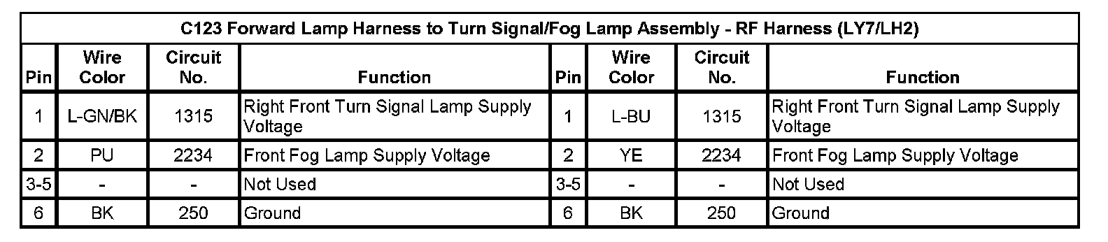 C123 Forward Lamp Harness to Turn Signal/Fog Lamp Assembly - RF Harness (LY7/LH2)