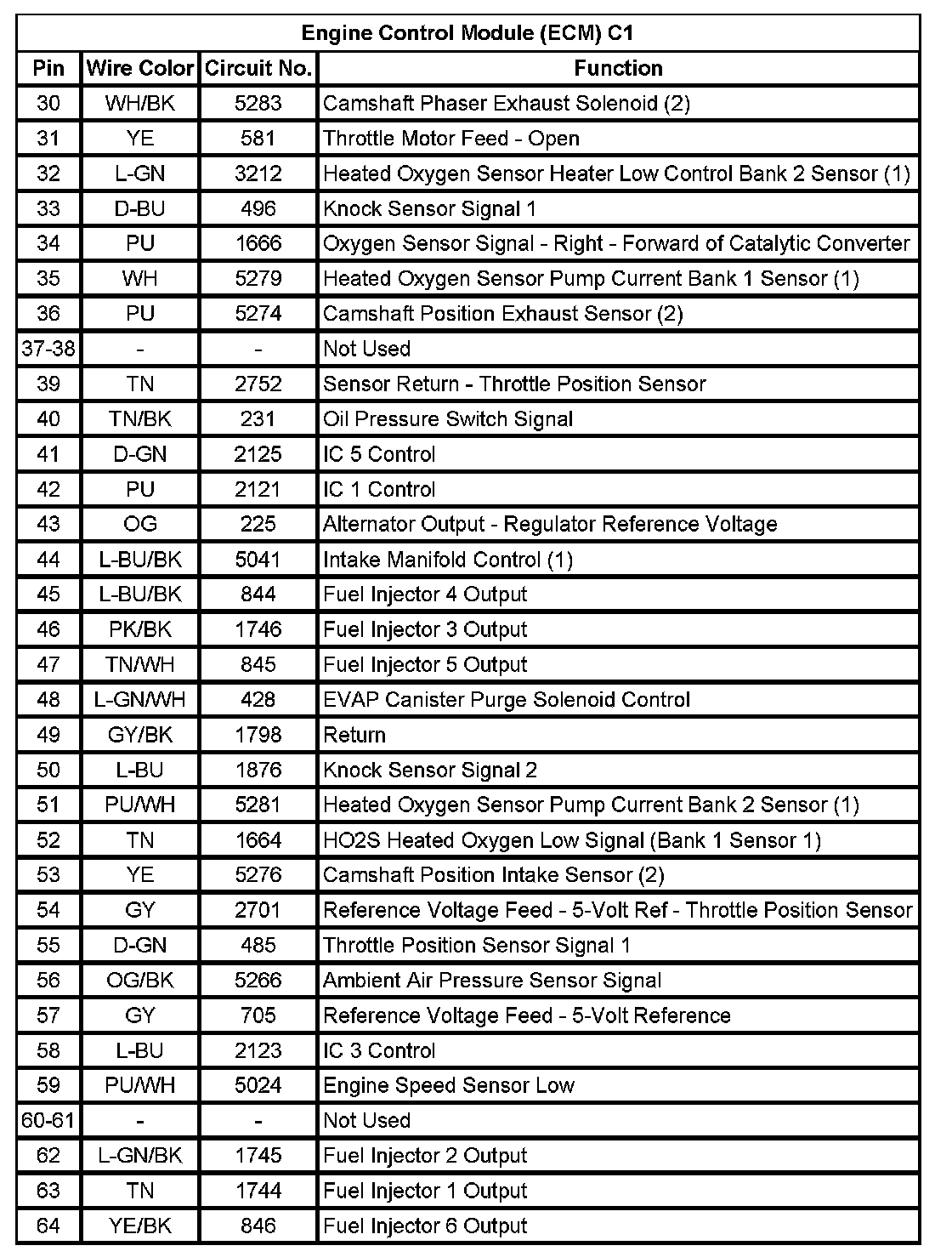 Engine Control Module (ECM) C1 (Pin 30 To 64):