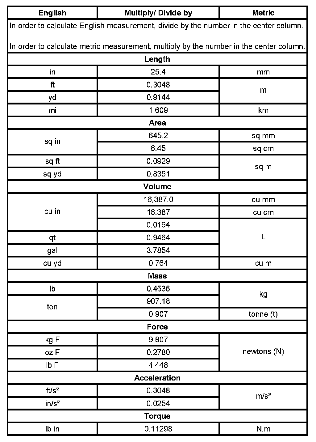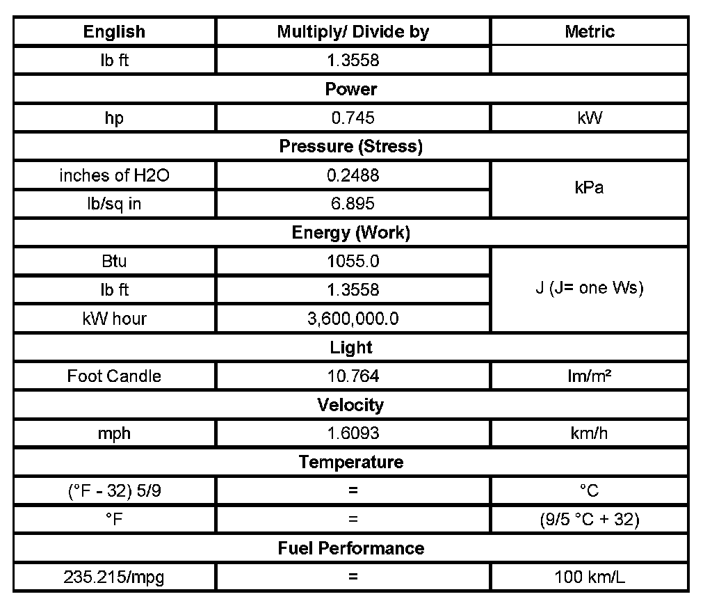 US English/Metric Conversion