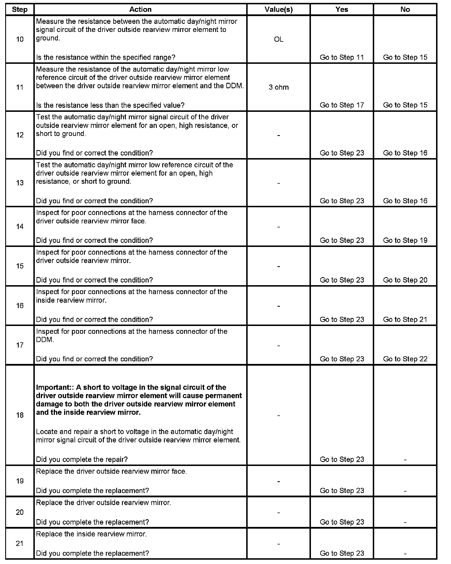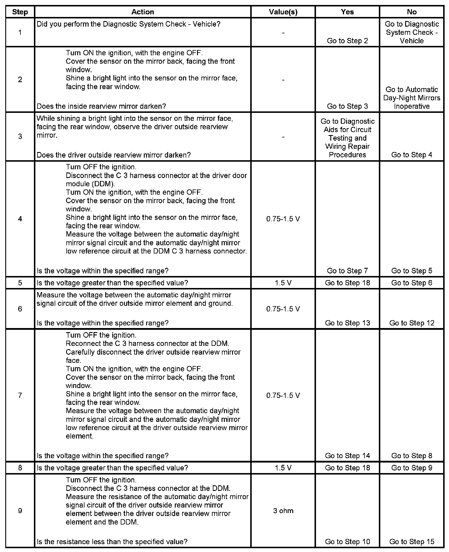 Outside Mirrors Automatic Day-Night Feature Inoperative